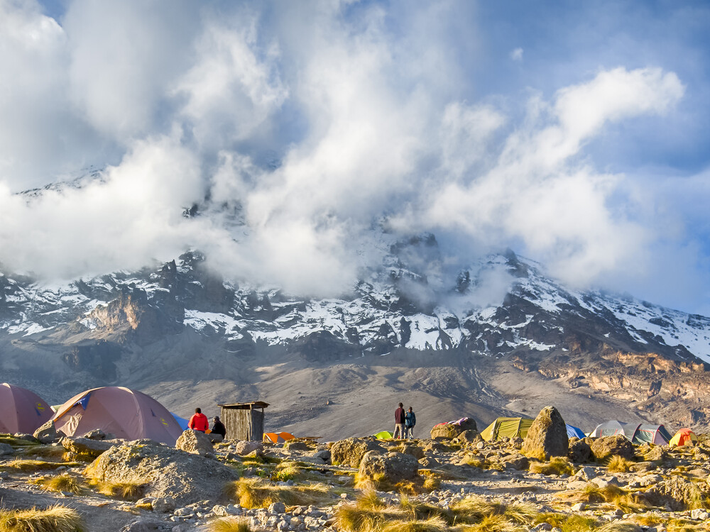 We think you’ll enjoy Shira Camp 1, which inhabits a plateau at 3810m and sees fewer travelers than many other Kilimanjaro campsites. There are no facilities here, but you should be able to see Kilimanjaro’s Kibo summit north-east from your tent, and Mount Meru to the west. Although there are no trees, the scrubby vegetation adds a tinge of green.